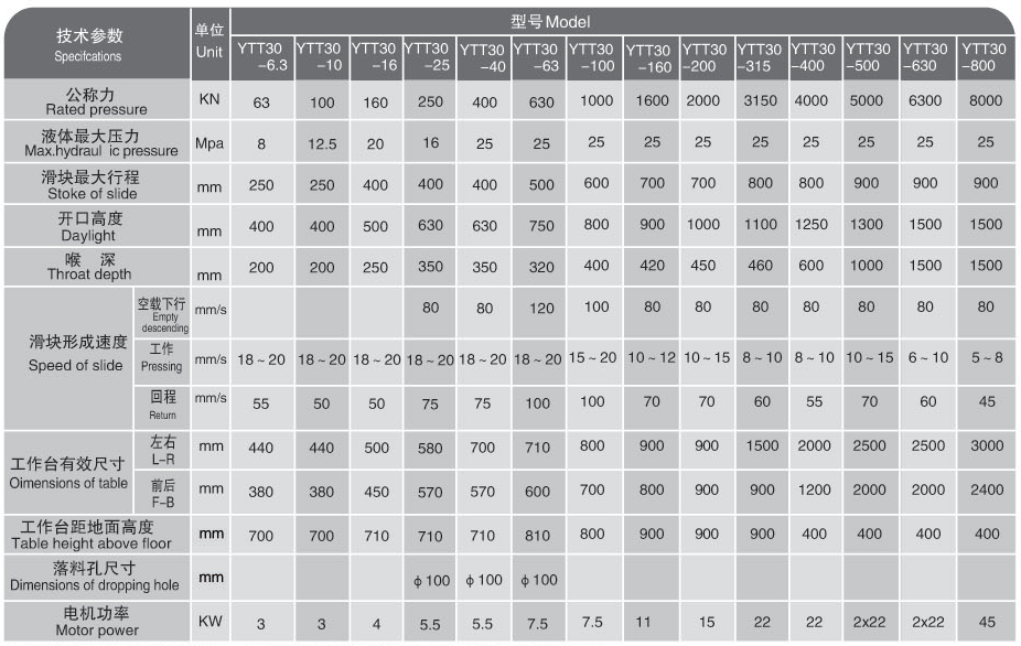 滑塊的工作壓力,空載快速下行和慢速工進的行程范圍均可根據(jù)工藝需要進行調(diào)整。